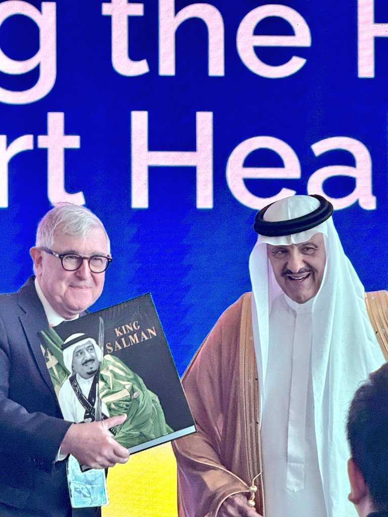 الأمير سلطان بن سلمان يهدي رئيس جامعة كاوست كتاب “الملك سلمان” خلال مؤتمر تشكيل مستقبل الصحة الذكية أهدى صاحب السمو الملكي الأمير سلطان بن سلمان بن عبدالعزيز، المستشار الخاص لخادم الحرمين الشريفين، مؤسس ورئيس مجلس أمناء مؤسسة التراث، نسخة من كتاب “الملك سلمان” باللغة الإنجليزية إلى البروفسور إداورد بيرن رئيس جامعة الملك عبد الله للعلوم والتقنية (كاوست)، وذلك على هامش مشاركة سموه في مؤتمر “تشكيل مستقبل الصحة الذكية الذي نظمته الجامعة”. يذكر أن الكتاب صدر ضمن سلسلة كتب الملوك التي تصدرها مؤسسة التراث والكتاب برعاية أرامكو السعودية، حيث دشن سموه النسخة العربية من الكتاب في اليوم الوطني الـ 94 عام 2024م بمركز الملك عبدالعزيز الثقافي العالمي (إثراء)، كما دشن سموه النسخة الإنجليزية عام 2024م بالتزامن مع ملتقى الدرعية الدولي الثاني. #كاوست #الصحة_الذكية